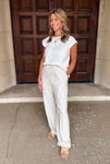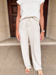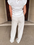 Elevate your wardrobe with our stylish Quincy Striped Linen Pants. These wide leg pants are the perfect combination of comfort and sophistication. Partially lined for added comfort, these pants feature a timeless ivory stripe pattern that will effortlessly elevate any outfit. Whether you're dressing up for a special occasion or keeping it casual, the Quincy Striped Linen Pants are the perfect choice.
