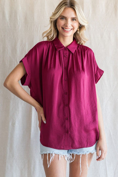 Don't miss out on our newest blouse! Demi is a chic, stylish piece featuring a button-up mock neck adorned with delicate ruffle trim. Subtle gather...