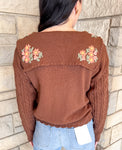 Introducing the Diana Floral Embroidered Cable Knit Cardigan. Romantic yet rustic, this cardigan blends boho charm with a touch of Western-inspired detail, making it a versatile layering piece that elevates everything from denim dresses to casual tops.
