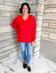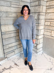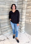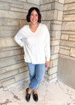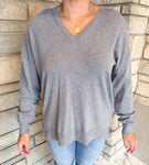 The elegant V neckline adds a touch of sophistication, while the ribbed cuffs and side slits enhance its modern appeal. Whether you're dressing up for a night out or keeping it casual for a day in, the Liz V Neck Sweater is your go-to choice for versatile fashion.