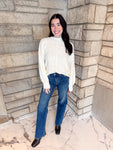 The Marla Cable Sweater is a timeless addition to your wardrobe, perfect for any occasion. Its slouchy design makes it an ideal choice for a dressed-up holiday look when paired with a skirt, or for a classic outfit with jeans.