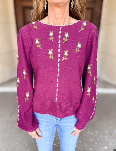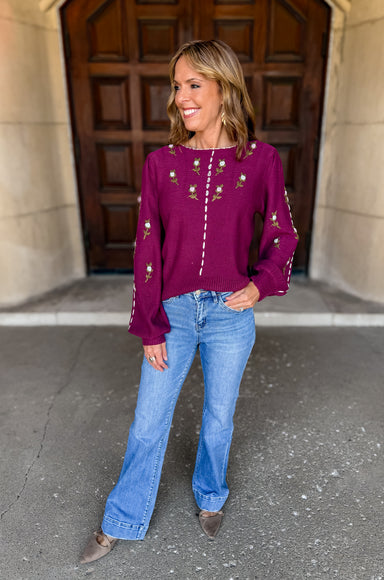 A softly feminine sweater that blends comfort and charm with timeless elegance. This sweater features delicate floral embroidery for a touch of cha...