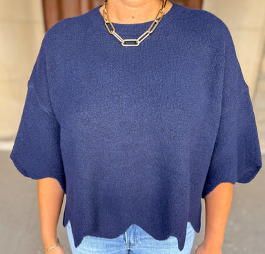 Perfectly relaxed with a feminine finish, this solid knit sweater features a classic crew neckline, half sleeves, and a drop shoulder for a laid-ba...