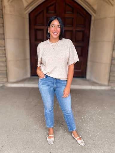 Playful and effortlessly cool, the Gloria Two Toned SS Sweater features exposed seams and short sleeves for that perfectly relaxed vibe. The croppe...