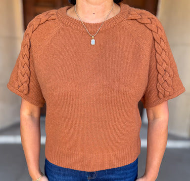 A fresh take on a classic knit, this solid sweater features short raglan sleeves with braided detailing for added texture and charm. Finished with ...