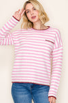 Classic stripes meet playful detailing in the Jenny Striped Contrast Trim Sweater, designed with long sleeves, a round neckline and contrast stitch trim for a charming touch. A chest pocket adds casual appeal, while the soft knit blend offers everyday comfort with easy stretch.