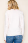 A soft ruffle V-neckline and button-front design give the Katie Ruffle Button Sweater a feminine, romantic feel. Long puff sleeves add gentle volume, balanced by ribbed cuffs and hem for a clean, structured finish. An easy, versatile piece that elevates everyday styling with subtle charm.