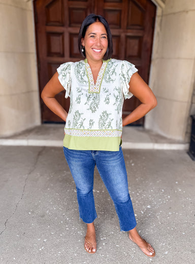 Soft and romantic, this blouse showcases a delicate watercolor floral print. Designed with a band collar and a button front, it’s finished with sho...