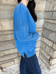 Relaxed and lived-in, this washed terry sweatshirt features a reverse detail, raw edge seams, and a comfortable split hem, adding a modern, worn-in character. Finished with a crew neckline and ribbed trim for a classic touch.