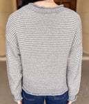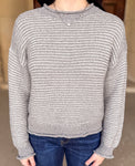This casual Elsie Stripe Pattern Sweater features a round neckline, long sleeves, and drop shoulders for a relaxed fit. Finished with raw edge details, it offers an effortlessly cool look in a versatile grey tone.