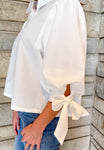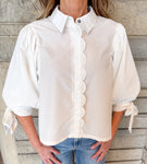 Kira Tie Sleeve Scallop Trim Top