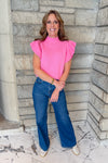 Easy to care for with a hand wash, the Natalie Mock Flutter Sweater is a versatile addition to your wardrobe, perfect for any occasion.