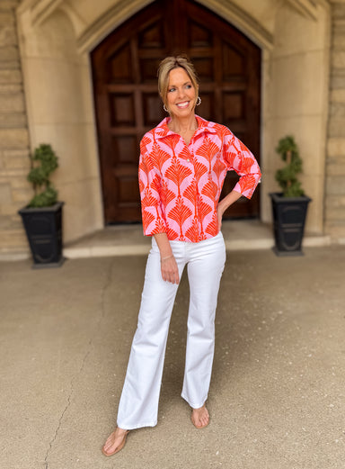 Introducing the Elise Floral Peasant Button Top, a perfect blend of romance and style. This enchanting top features soft fall florals that effortle...