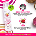BEETTAN self-tanning mousse is vegan, paraben-free, and made with all organic ingredients. It's formulated to give instant color and a natural tan suitable for all skin tones. The mousse hydrates and nourishes the skin, while its anti-aging components help tone and firm the skin. The best part? It looks and smells incredible! Infused with coconut water, it acts as a natural toner, keeping the skin hydrated without any oily or tacky residue. The mousse is easy to apply, ensuring flawless results. It offers buildable color, allowing you to apply until you achieve your desired darkness, with instant results.