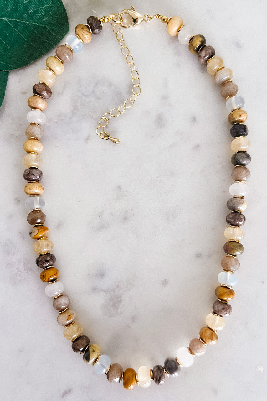 Chevron down icon Chevron down icon Natural Stone Beaded Necklace No reviews Sold out $35.00 | / Sold out Spinner icon Notify me when back in stock Email address Email me when available Semi-precious stones 15-17' length Lobster clasp Polished gold